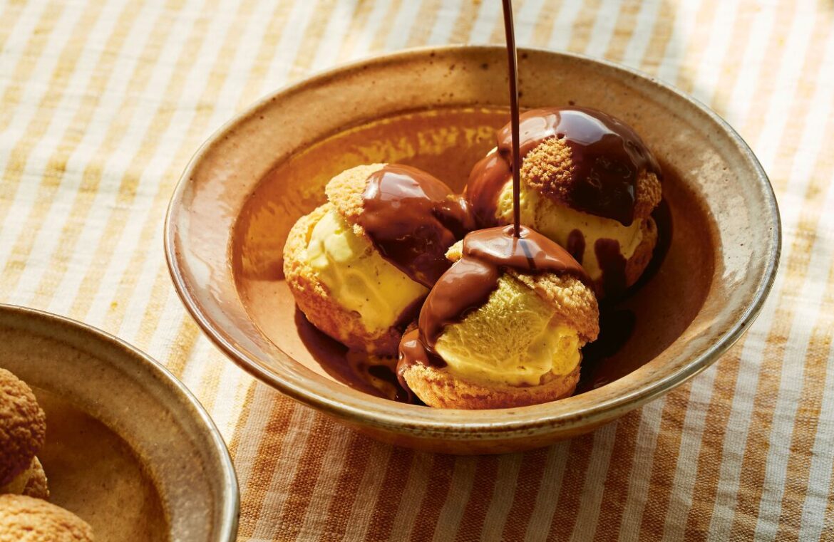 Choux pastry, ice cream and chocolate sauce, it doesn’t get much simpler than that. It also creates a crowd favourite that has stood the test of time, profiteroles.