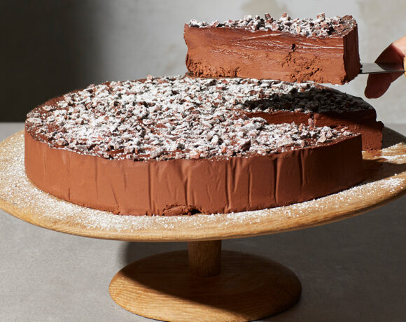 Flourless chocolate cakes can often lean into a deeply fudgy, almost sticky texture, but this version still retains a bit of a cakey crumb that stays eternally moist thanks to all the ground almonds. It makes for a good celebration cake or something to serve after a cosy dinner party when only chocolate on chocolate on chocolate will do. Serve with a good splash of cold cream.