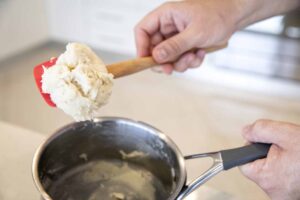 First prepare the Tang Zhong: Heat the milk in a small saucepan, then add the flour and stir to combine. Place back on the heat, continue stirring until thickened (this should occur around 68-70°C). Allow the Tang Zhong to cool to room temperature then store in refrigerator until ready to make final dough.