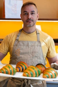 “Matcha brings elegance and intensity. White chocolate adds creaminess and balance. And the green strip gives the croissant its bold visual identity without altering the flavour of the dough.”