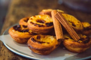 Pre-heat the oven to 230°C. Bake for 9 minutes—the tops should be slightly golden with darkened spots, and the custard should not jiggle around too much! Let the tarts cool for 2 minutes (I know, waiting is the hardest part!) before you remove them from the tins. You’ll need to wait 10-15 minutes before you devour one because the custard is too hot!