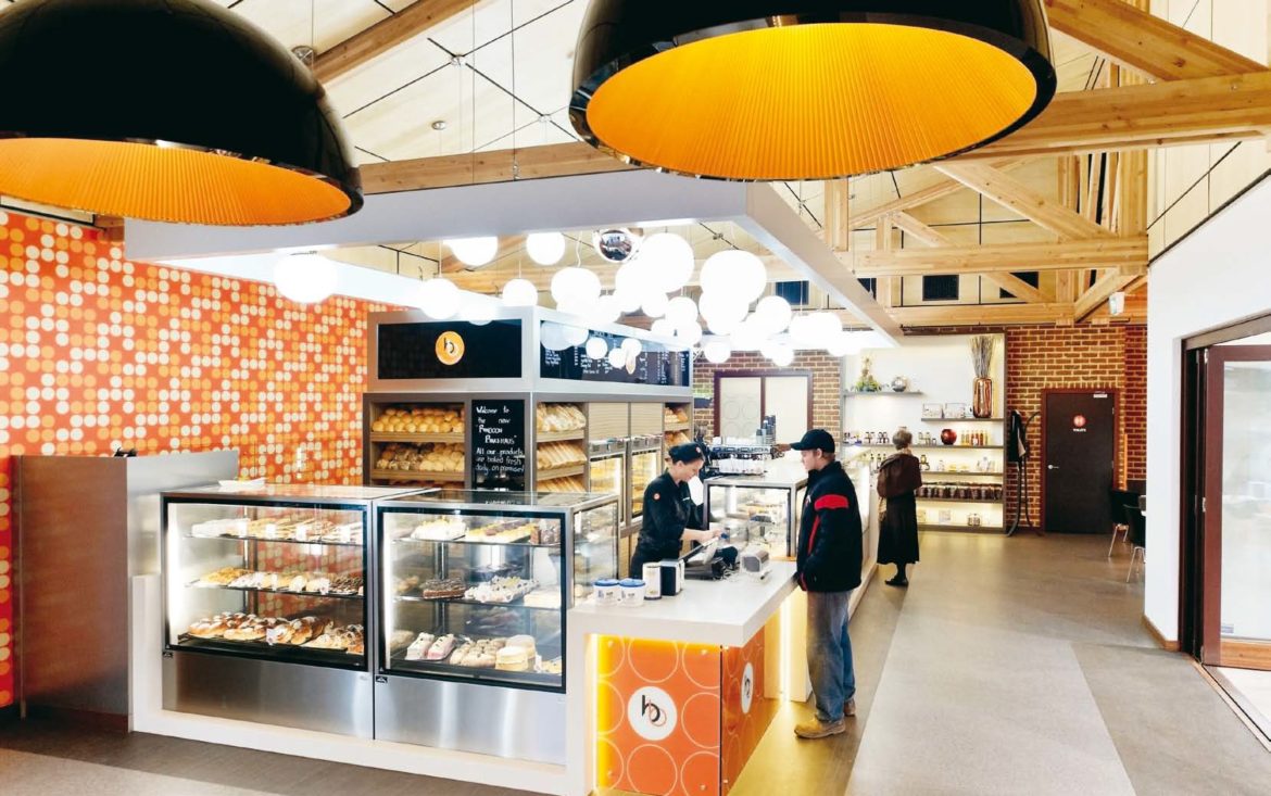 To encourage atmosphere in the café, Fratelle Group created distinct zones in their design. These include a stunning alfresco seating area, which captures the winter sun; a main seating area complete with a children’s bakery, where parents can enjoy a coffee and cake while keeping an eye on their children; and a service area with natural views. A breakfast bar utilises horizontal glazing to capture the streetscape outside.