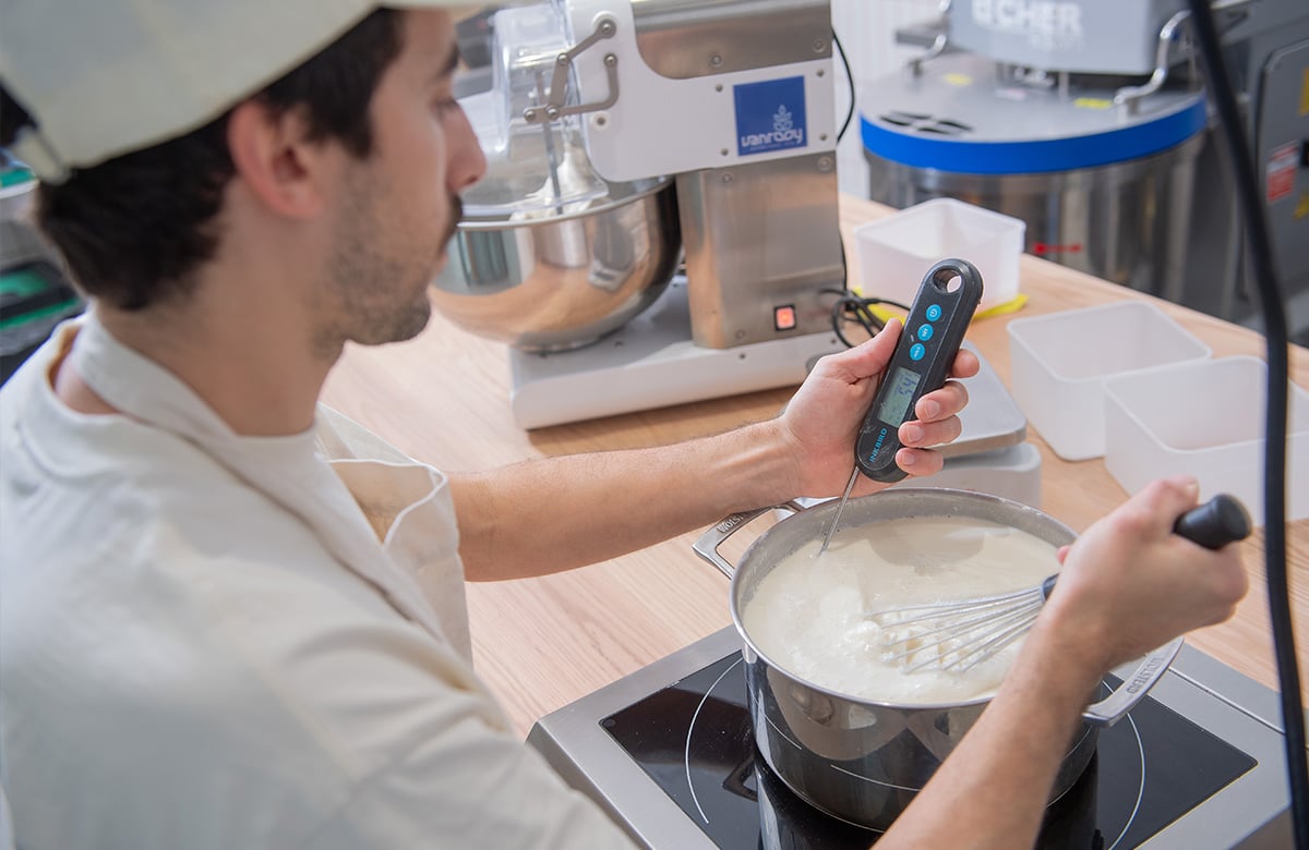 Tanghzong is a mixture of flour and liquid – typically water or milk – that is brought up to temperature until it thickens and becomes almost paste-like. The addition of tanghzong can result in a softer, fluffier and longer-lasting loaf. Have your tangzhong ready to go before you begin your second dough.