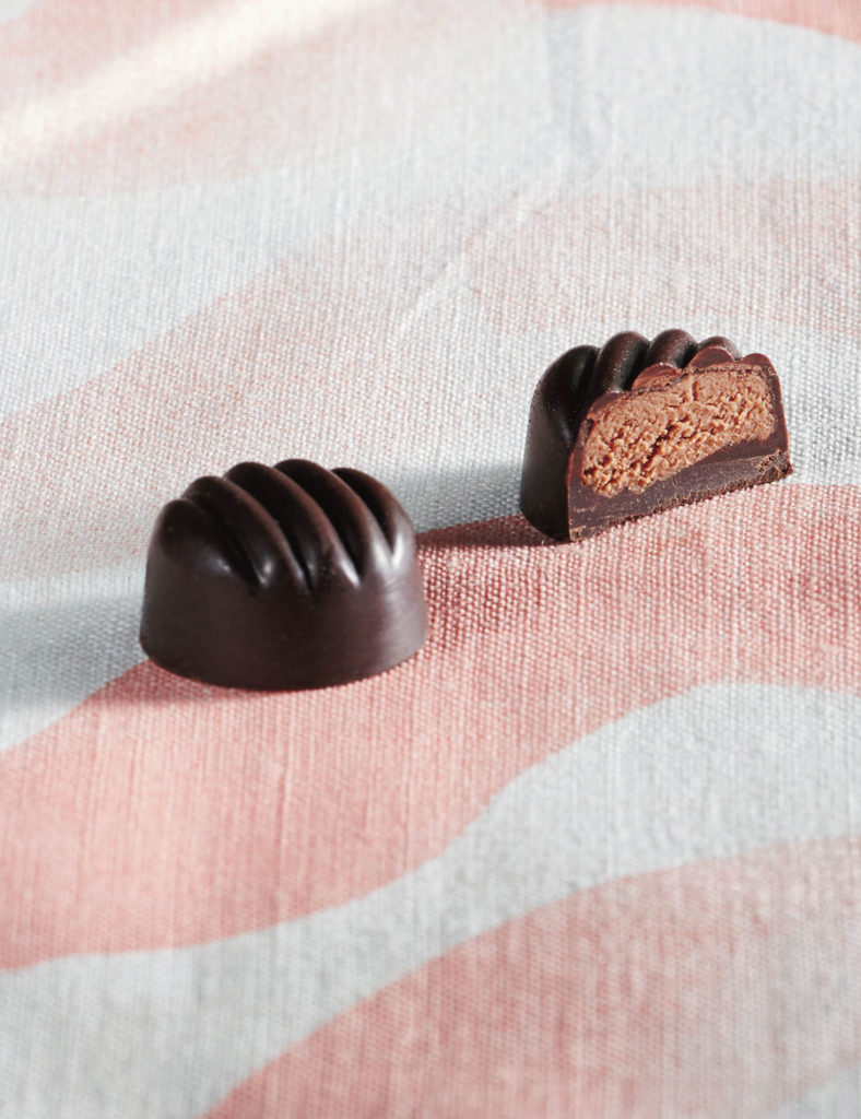 Note: Once the chocolates are set, twist the mould slightly as you would an ice tray, then turn the mould upside down and tip the chocolates out.